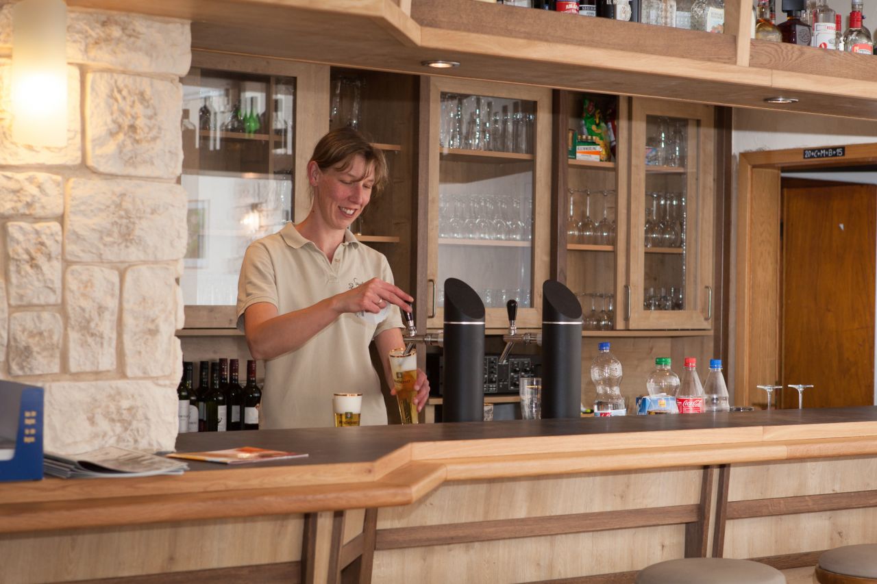 Gastronomie im Gasthof zum Diemeltal in Marsberg-Helminghauseneine Frau zapft ein Bier im Gasthof zum Diemeltal in Marsberg-Helminghausen